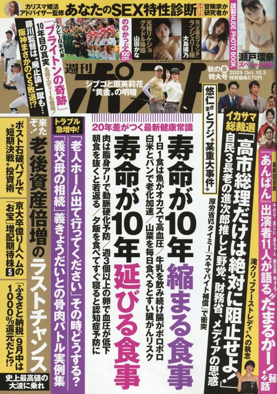 投稿日: 2025-09-192025-10-08週刊ポスト 2025年 10/3号 グラビア紹介 発売:2025年09月19日 グラビア 大島璃乃、山田かな、瀬戸環奈 “週刊ポスト 2025年 10/3号 グラビア紹介” の続きを読む
